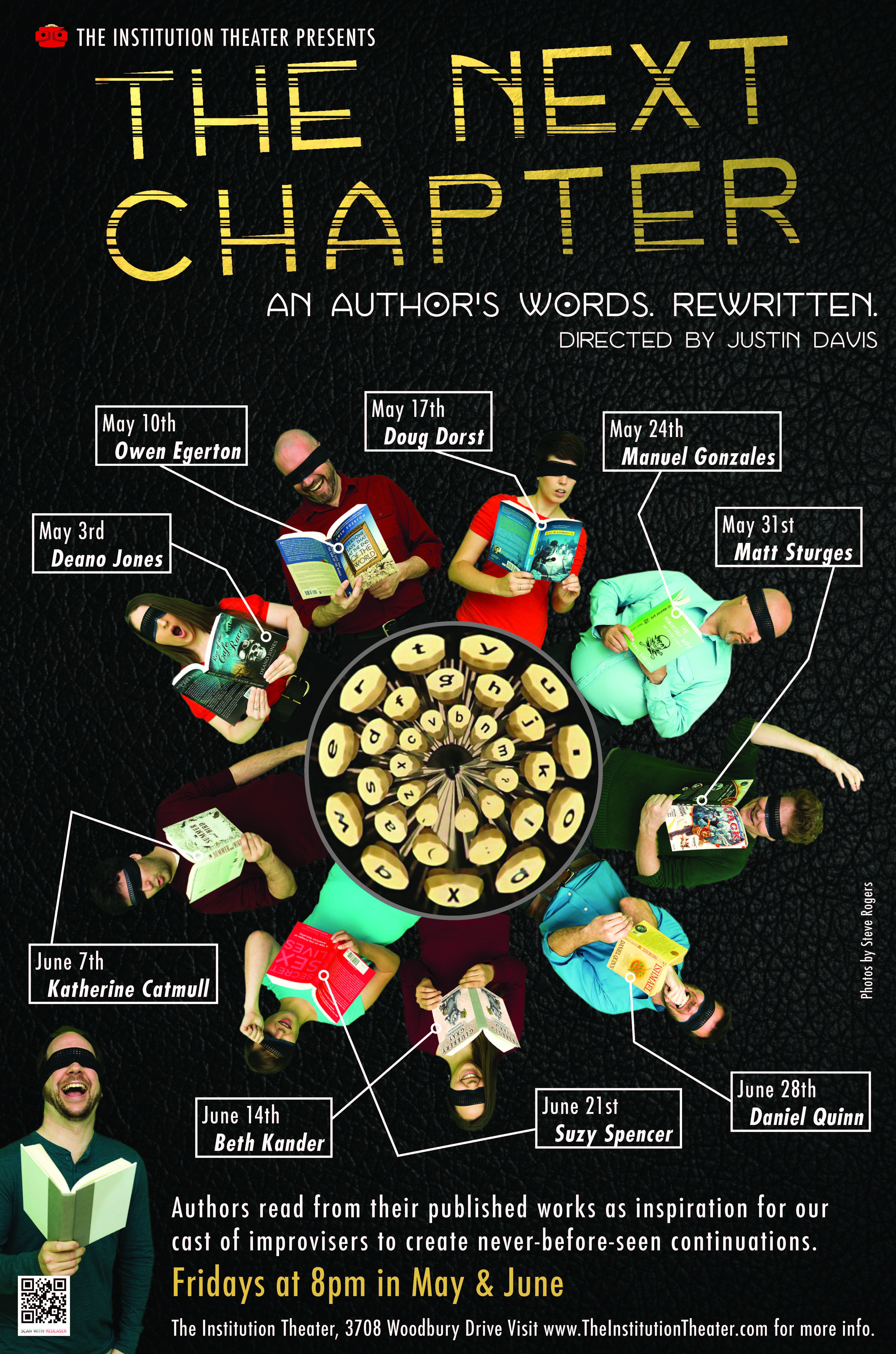 Blurb: Every Friday at 8:00 PM from May 3 to June 28 at the Institution Theater, listen to works read by your favorite local authors and watch as the cast of The Next Chapter whisk you away into those worlds in ways you’ve never seen before. The cast will use published works as inspiration to improvise a new, never-before- seen continuation and ending set in the same world as the authors’ work. With nine authors of varying genres and renown, each show will take the audience to uncharted territories of both comedy and drama.